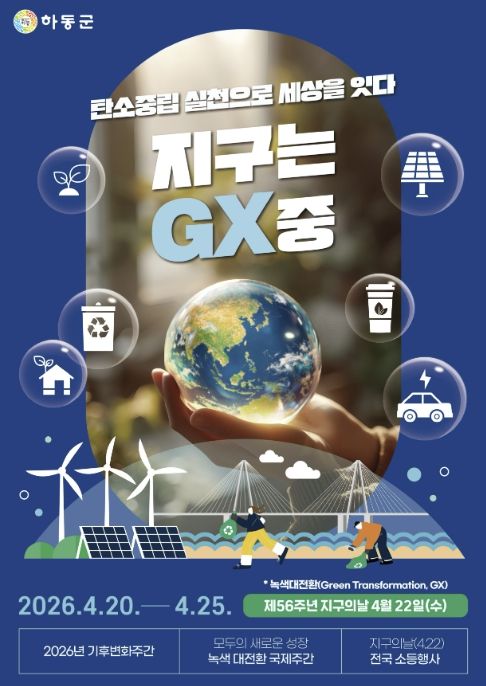 (포탈뉴스통신) 하동군은 제56주년 지구의 날을 맞아 4월 20일부터 24일까지 ‘제18회 기후변화주간’을 운영한다고 밝혔다.