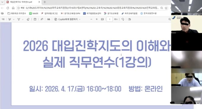 (포탈뉴스통신) 경기도파주교육지원청은 급변하는 대입 환경에 발맞추어 교원의 대입진학지도 전문성을 높이고 학생 맞춤형 진학 교육을 실현하기 위하여 '2026 대입진학지도의 이해와 실제 직무연수'를 운영한다.