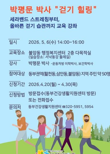 모집 인원은 선착순 50명으로, 건강한 걷기 습관을 만들고 싶은 동부권역(활천동, 삼안동, 불암동)지역 주민이라면 누구나 참여할 수 있다.