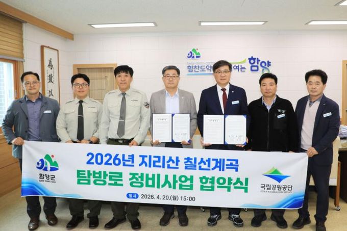 이번 협약은 함양군과 지리산국립공원경남사무소가 상호 협력체계를 구축해 칠선계곡 탐방로의 안전성과 이용 편의를 높이고, 지속 가능한 탐방환경을 조성하기 위해 마련됐다.
