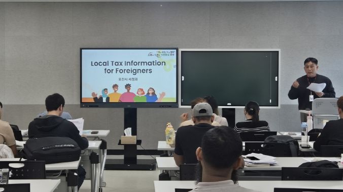 이날 교육에서는 세정과 윤효섭 세정팀장이 강사로 참여해 주민세, 자동차세 등 취득세와 자동차세 등 주요 세목에 대한 안내부터 효율적인 납부 방법, 가산세 부과 및 번호판 영치 등 체납 시 발생할 수 있는 불이익까지 상세히 설명하며 외국인 주민들이 실생활에서 꼭 알아야 할 지방세 관련 정보를 전달했다.