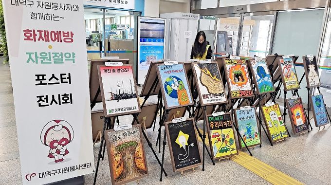 (포탈뉴스통신) 대덕구자원봉사센터(이사장 박재용)는 21일 대덕구청에서 ‘화재 예방 및 자원 절약 포스터 그리기’ 자원봉사활동 결과물 전시회를 개최했다.