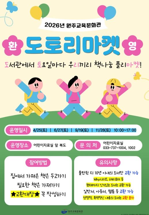 (포탈뉴스통신) 원주교육문화관은 4월 25일부터 책나눔 ‘도토리마켓’을 운영한다.