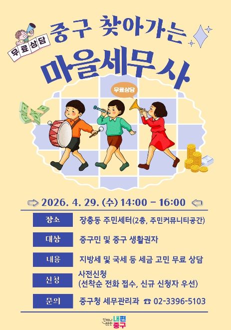 구 관계자는 "어렵고 복잡한 세금 문제를 혼자 고민하기보다는 전문가와의 상담으로 부담을 더시길 바란다"며 "'든든한 내편 중구'는 늘 구민 가까이에서 실질적인 도움을 드리는 행정을 이어가겠다"고 밝혔다.