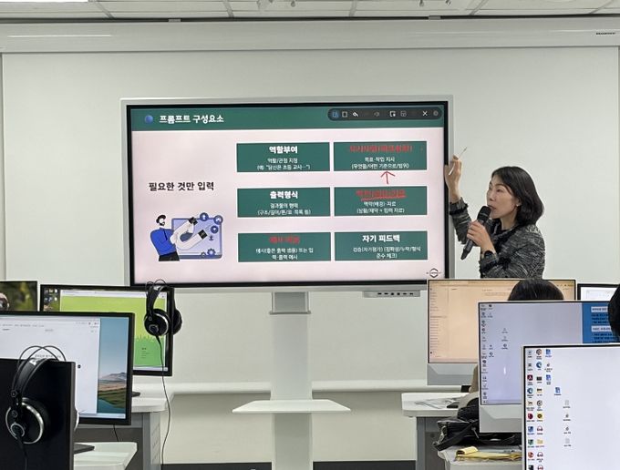 (포탈뉴스통신) 세종특별자치시육아종합지원센터는 보육교사의 디지털 역량 강화를 지원하고 보육 현장에서의 업무 효율성을 높이기 위해 4월 14일~15일, 4월 21일 3일간 관내 어린이집 보육경력 4년이상의 경력교사를 대상으로‘경력교사를 위한 AI 활용 실무 교육’을 실시했다.