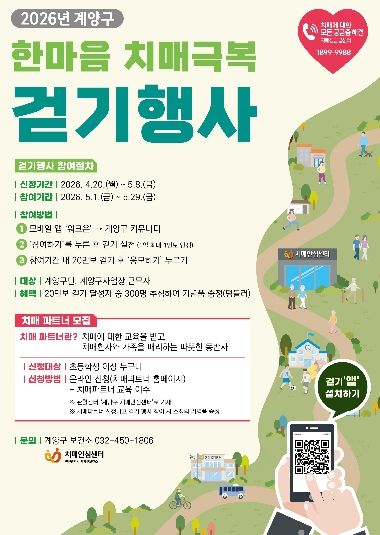(포탈뉴스통신) 인천광역시 계양구는 구민의 치매 예방과 인식 개선을 위해 5월 1일부터 29일까지 4주간 ‘2026년 계양구 한마음 치매극복 걷기행사’를 개최한다.