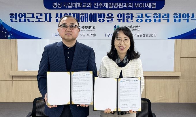 (포탈뉴스통신) 경상국립대학교 안전관리본부와 진주제일병원은 4월 22일 가좌캠퍼스 공동실험실습관 2층 세미나실에서 현업근로자 산업재해 예방을 위한 공동협력 협약을 체결했다.