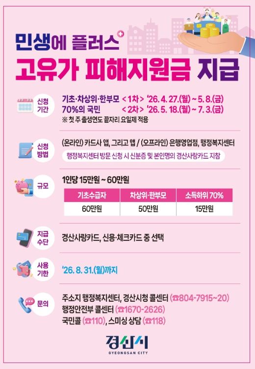 경산시장 권한대행 이도형 부시장은 “고유가·고물가로 어려움을 겪는 시민들이 체감할 수 있도록 신속하고 정확한 지급에 최선을 다하겠다”며, “읍면동과 긴밀히 협력해 빈틈없는 지원이 이뤄지도록 하겠다”고 말했다.