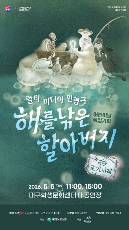 (포탈뉴스통신) 대구학생문화센터는 어린이날을 맞아 어린이와 가족 관객을 위한 특별 기획공연 '멀티미디어 인형극 해를 낚은 할아버지'를 오는 5월 5일 대공연장에서 선보인다.