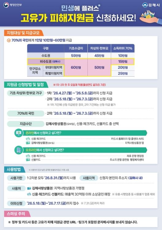 문의는 김해시 민원콜센터와 읍면동 행정복지센터로 하면 된다.