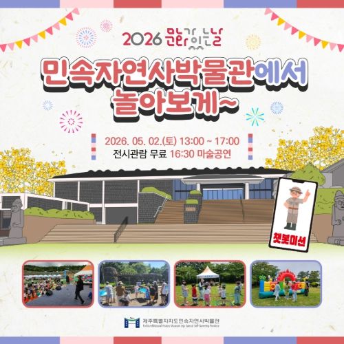 (포탈뉴스통신) 제주특별자치도 민속자연사박물관은 오는 5월 2일 오후 1시 박물관 야외 광장에서 2026년 ‘문화가 있는 날’ 첫 행사인 ‘민속자연사박물관에서 놀아보게~’를 개최한다.