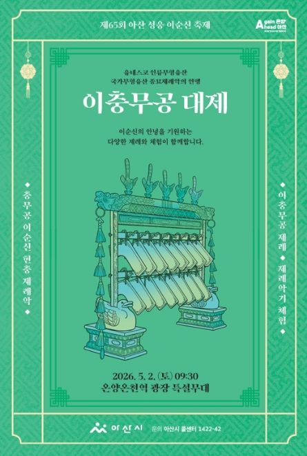 (포탈뉴스통신) 아산시가 충무공 이순신 탄신 제481주년을 기념해 오는 5월 2일 온양온천역 광장에서 이순신 장군의 안녕을 기원하는 다양한 제례와 체험을 제공하는 ‘이충무공 대제’ 행사를 개최한다.
