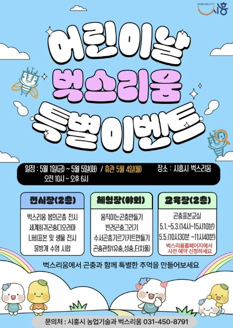 (포탈뉴스통신) 시흥시 곤충체험전시관 ‘벅스리움’은 어린이날을 맞아 아동과 가족이 함께 즐길 수 있는 ‘특별 프로그램’을 오는 5월 1일부터 5일까지 운영한다.
