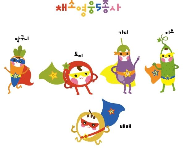 교육은 영양교육체험센터의 채소·과일 캐릭터인 슈퍼 히어로 채소과일 5총사 ▲토미(토마토) ▲가디(가지) ▲이오(오이) ▲당구니(당근) ▲배배(배) 가 인형을 변해 함께한다.