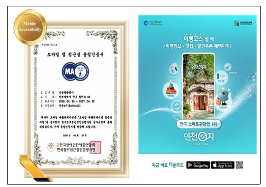 (포탈뉴스통신) 인천광역시(시장 유정복)는 스마트관광 플랫폼 ‘인천e지’ 앱(APP)이 관광약자를 배려한 서비스 구현의 우수성을 인정받아, ‘모바일 앱 접근성 품질인증(Mobile Accessibility)’을 3년 연속 획득했다고 밝혔다.