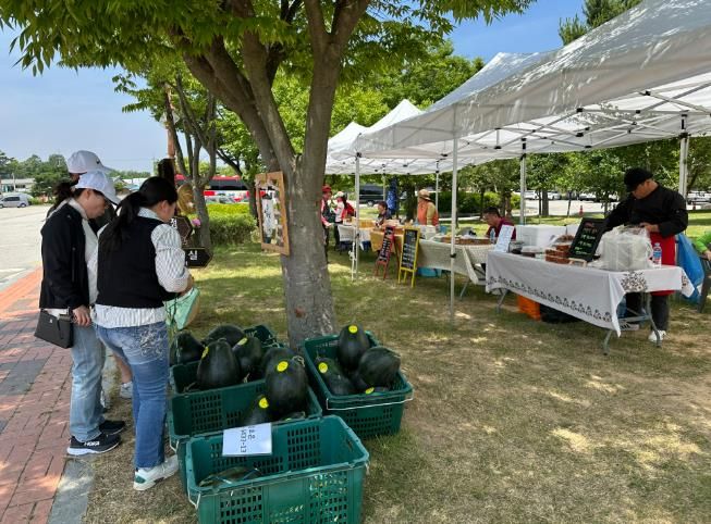 주요 판매 품목으로는 ▲주민 가공식품(식혜, 오란다, 떡, 복분자 주스 등) ▲제철 농산물(수박, 고들빼기 등) ▲업사이클링제품(유리공방, 수공예품 등) 등이다.