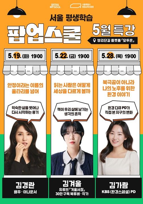 (포탈뉴스통신) 서울특별시평생교육진흥원이 지난 4월 도봉구 쌍문역 인근에 개관한 서울시 첫 역세권 평생학습 거점 ‘서울 평생학습 팝업스쿨’을 확대 운영한다. 시범운영 한 달간 500여 명이 참여했으며, 5월에는 정규강좌, 명사특강, 러닝숍 등 3개 영역에서 총 13개 과정을 편성하고, 650명의 시민 참여를 목표로 한다.