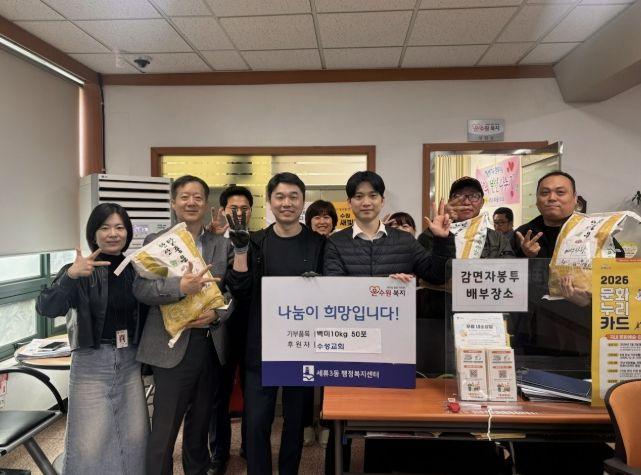(포탈뉴스통신) 수원시 권선구 소재 수성교회는 세류3동행정복지센터에 쌀 50포를 기부하며, 지역 내 어려운 이웃을 위한 따뜻한 나눔을 실천했다.