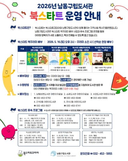(포탈뉴스통신) 인천 남동구립도서관은 5월 16일 토요일 오후 2시부터 ‘2026년 북스타트 책 꾸러미 배부’를 시작한다고 24일 밝혔다.