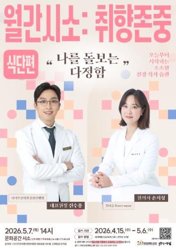 7일에는 다이트 한의원 부평점 신수용·손지성 원장이 ‘나를 돌보는 다정함, 오늘부터 시작하는 소소한 건강 식사 습관’을 주제로 강연을 진행한다.