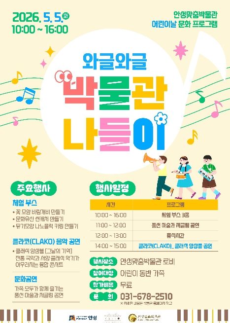 (포탈뉴스통신) 안성맞춤박물관은 오는 5월 5일 어린이날을 맞아, 온 가족이 함께 즐길 수 있는 문화 프로그램 ‘와글와글 박물관 나들이’를 개최한다고 밝혔다.