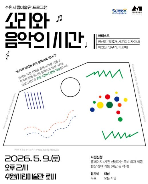(포탈뉴스통신) 경기도 수원시립미술관은 을 맞아 소리를 주제로 한 음악 프로그램 '소리와 음악의 시간'을 5월 9일 개최하며 참여자를 모집한다.