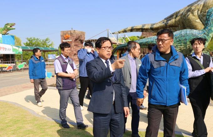 현장점검에서도 체험부스가 운영되는 잔디광장의 기반 시설을 집중 점검했으며, 어린이공룡과학체험관과 공룡발자국 보호각, 물놀이 체험장 등에 대한 사전 정비 사항에 대해 꼼꼼히 살피며 관람 편의시설 개선에 주력하기로 했다.