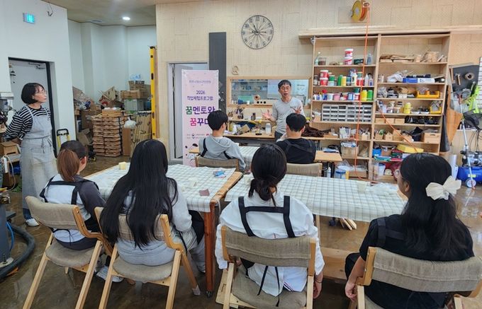 이날 참여한 청소년들은 김준호 꿈멘토로부터 가구디자이너가 되기까지의 과정과 공방 운영 경험, 재능기부 활동 등에 대한 이야기를 듣고 진로에 대해 깊이 고민하는 시간을 가졌다. 또, 자신만의 작품을 제작하는 체험도 진행됐다.