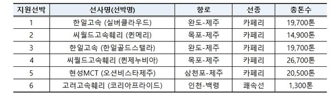 당초 펀드 지원 대상은 연안여객선이었으나, 연안여객업계와 연안화물업계의 형평성을 고려하여 2024년도부터 지원 대상을 연안화물선까지 확대했다. 그 결과 올해까지 조성된 2,490억 원의 펀드 자금으로 총 11척을 지원하고 있으며, 그 중 실버클라우드(제주-완도), 퀸제누비아(목포-제주) 등 6척의 연안여객선은 건조가 완료되어 항로에 투입되고 있다.