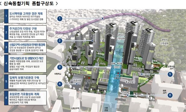또한, 현재 대상지는 제1종일반주거지역이 대부분을 차지하는 저층주거 밀집지이나, 시는 신림재정비촉진지구의 개발 흐름에 맞춰 용도지역을 제2종일반주거지역으로 상향한다. 이를 통해 사업 여건을 획기적으로 개선해 관악산의 녹음과 도시의 활력이 어우러지는 주거단지를 조성할 계획이다.