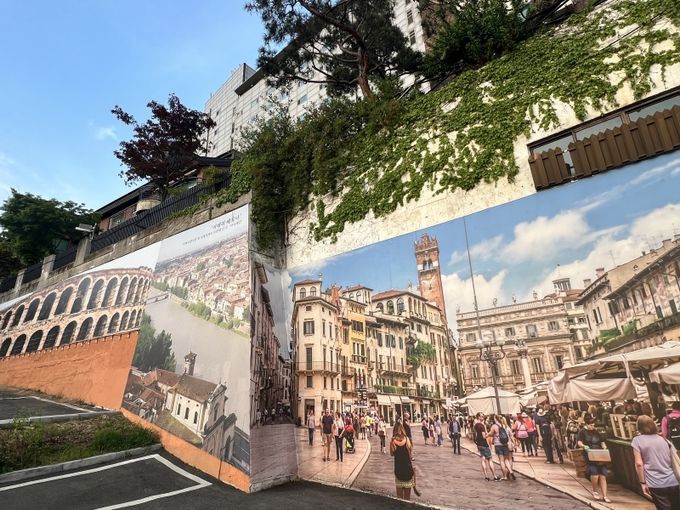 현장에 들어서면 가장 먼저 강렬한 색감의 입구와 대형 벽화가 시선을 사로잡는다. 입구 한편에는 ‘H. Santa Margherita’ 표식이 설치돼 있고, 주변 벽면에는 로미오와 줄리엣을 모티브로 한 이미지와 장면들이 이어지며 공간 전체에 하나의 서사를 부여하고 있다.