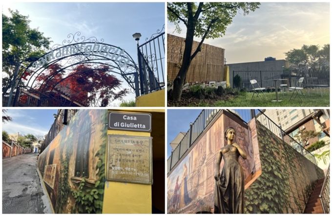 로미오와 줄리엣의 상징적 이미지는 물론, 서로를 향한 시선과 약속의 순간, 고백의 장면을 연상시키는 연출이 곳곳에 배치돼 있어 연인들에게는 더욱 특별한 장소로 다가온다. 특히 프러포즈 장면을 형상화한 벽화와 조형물은 이 공간을 단순한 감상형 공간이 아닌, 실제로 사랑을 고백하고 기억을 남길 수 있는 공간으로 인식하게 만든다.