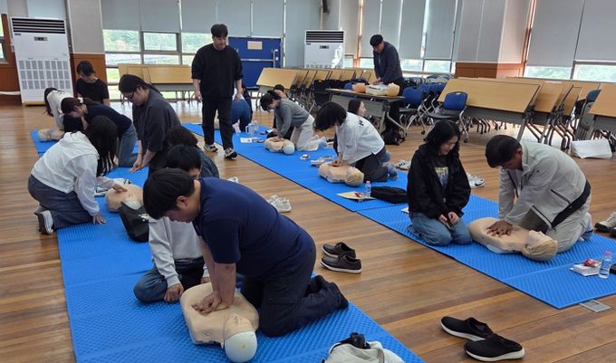 강의를 맡은 전북대학교병원 응급의학과 김소은 교수는 심정지 발생 후 뇌 손상을 최소화할 수 있는 ‘4분의 골든타임’의 중요성을 강조하고, 응급처치 기본 순서인 ‘CAB(가슴압박·기도확보·호흡)’를 중심으로 실습과 함께 체계적인 교육을 진행했다.