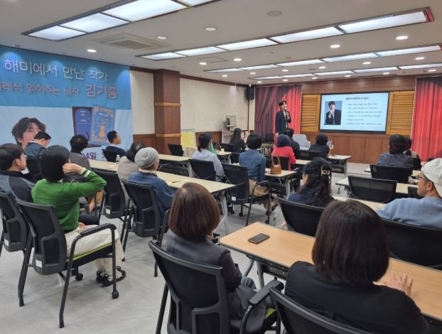 (포탈뉴스통신) 충청남도서산교육지원청해미도서관은 제4회 도서관의 날 및 제62회 도서관 주간을 맞아 지난 24일 지역주민을 대상으로 특강 '클래식 읽어주는 남자' 김기홍 작가와의 만남을 성황리에 운영했다.