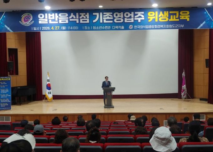 (포탈뉴스통신) 청도군은 27일 청소년수련관 다목적홀에서 2026년도 일반음식점 기존 영업주 위생교육을 실시했다.
