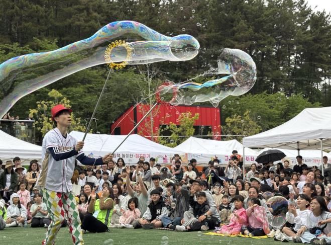 행사 무대에서는 마술, 버블쇼, 퍼포먼스 등 참여형 공연이 어린이들의 상상력과 호기심을 자극한다.