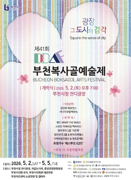 (포탈뉴스통신) 부천시는 ‘제41회 부천복사골예술제’를 5월 2일부터 5일까지 4일간 부천시청 잔디광장과 중앙공원, 부천아트센터 일원에서 연다.