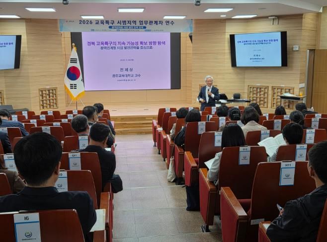(포탈뉴스통신) 경북교육청은 28일 구미시에 있는 경상북도교육청연수원 소강당에서 도내 15개 교육특구 시범 지역의 교육지원청과 지자체 관계자 80여 명이 참석한 가운데 ‘2026 교육특구 시범지역 업무 관계자 연수’를 개최했다고 밝혔다.