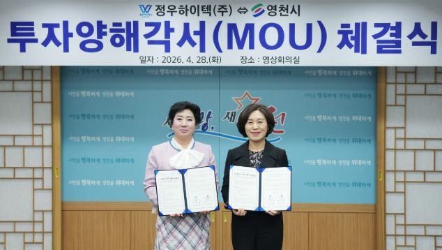 이날 협약식에는 최정애 영천시장 권한대행과 정혜순 정우하이텍㈜ 대표이사 등 관계자들이 참석해, 성공적인 사업 추진을 위한 상호 협력을 약속했다.