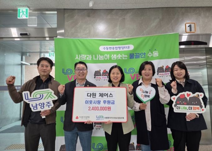 (포탈뉴스통신) 남양주시는 지난 28일 수동면 소재 다원체어스가 수동면 어르신들을 위한 후원금 240만 원을 수동면 지역사회보장협의체에 전달했다고 29일 밝혔다.