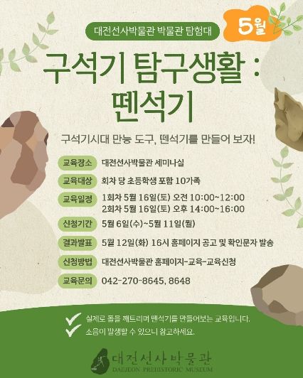 (포탈뉴스통신) 대전선사박물관은 5월 가정의 달과 ‘박물관·미술관 주간(Museum Week)’을 맞아 온 가족이 함께 즐길 수 있는 다양한 선사 문화 체험 프로그램을 운영한다.