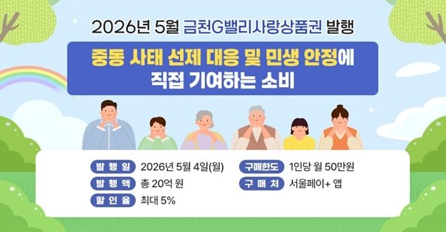 (포탈뉴스통신) 금천구는 5월 4일 오전 9시 ‘금천G밸리사랑상품권’ 20억 원을 발행한다고 밝혔다.
