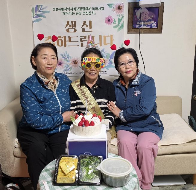 (포탈뉴스통신) 서울 성북구 정릉4동 지역사회보장협의체가 4월 특화사업 ‘찾아가는 은빛 생신잔치’를 처음 추진하고 관내 독거어르신 가정을 방문해 생신을 축하했다.