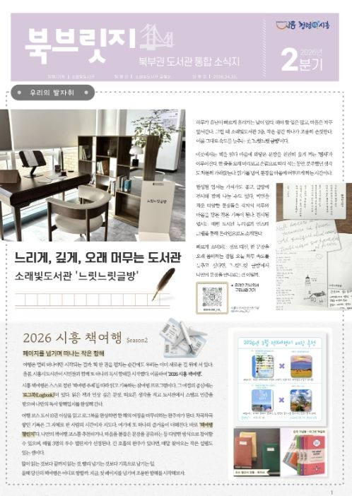 (포탈뉴스통신) 시흥시 소래빛도서관은 북부권 공공ㆍ작은도서관의 다양한 소식을 한눈에 전하는 분기별 소식지 ‘북브릿지(북부릿지)’ 2026년 2분기호를 발행했다.