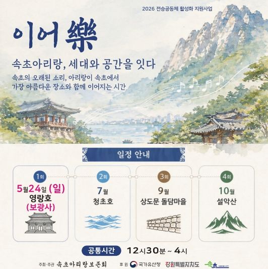 속초시에서는 속초아리랑보존회가 시행단체로 참여해 프로그램을 운영할 계획이다.