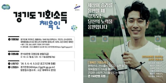 ‘체육인 기회소득’은 사회적 가치를 창출하면서도 정당한 보상을 받지 못했던 체육인에게 연간 150만 원을 지원하는 사업이다. 체육 활동의 지속성을 높이고, 체육 분야의 사회적 가치 확산을 도모하기 위해 추진된다.