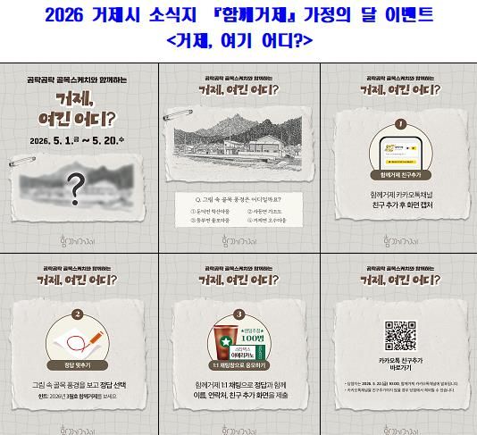 거제시 관계자는 “가정의 달을 맞아 가족과 함께 즐기면서 거제를 다시 한 번 돌아볼 수 있는 이벤트를 기획했다”며 “앞으로도 시민들이 ‘함께거제’를 통해 지역 소식과 정보를 보다 친근하게 접할 수 있도록 다양한 참여형 콘텐츠를 지속적으로 운영해 나가겠다”고 전했다.