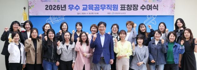 올해로 6회째를 맞이한 이번 표창은 인천시교육청 소속 교육공무직원 중 학교 현장에서 맡은 바 직무를 성실히 수행하고, 인천교육 발전에 기여한 우수 직원을 대상으로 실시됐으며, 표창 대상자는 교무실무사, 조리실무사 등 총 120명이다.