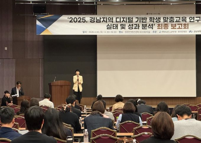 (포탈뉴스통신) 경상남도교육청은 30일 창원컨벤션센터(CECO)에서 AI·디지털 연구·선도학교 담당자 등 200여 명을 대상으로 ‘경남 지역 디지털 기반 학생 맞춤 교육 연구·선도학교 실태 및 성과 분석 최종 보고회’를 개최한다.