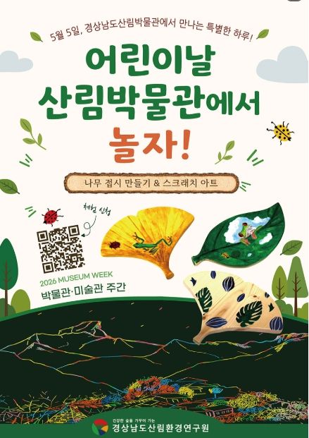 (포탈뉴스통신) 경상남도산림환경연구원(원장 윤경식)은 어린이날과 세계 박물관의 날(매년 5월 18일)을 기념해 경상남도산림박물관에서 체험·교육 프로그램을 운영한다고 밝혔다.